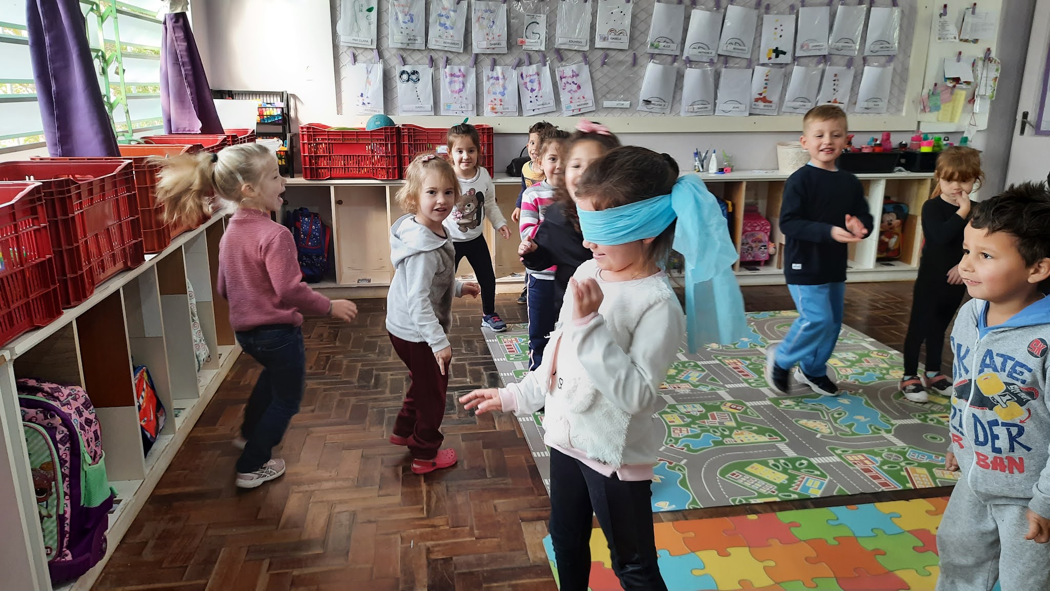 A partir de uma pesquisa realizada com as famílias do Pré 1, descobrimos diversas brincadeiras que os pais realizavam na sua infância. Com o objetivo de resgatar momentos lúdicos em família e na escola, propomos para os pais brincarem com seus filhos em casa e também realizamos algumas brincadeiras na escola.